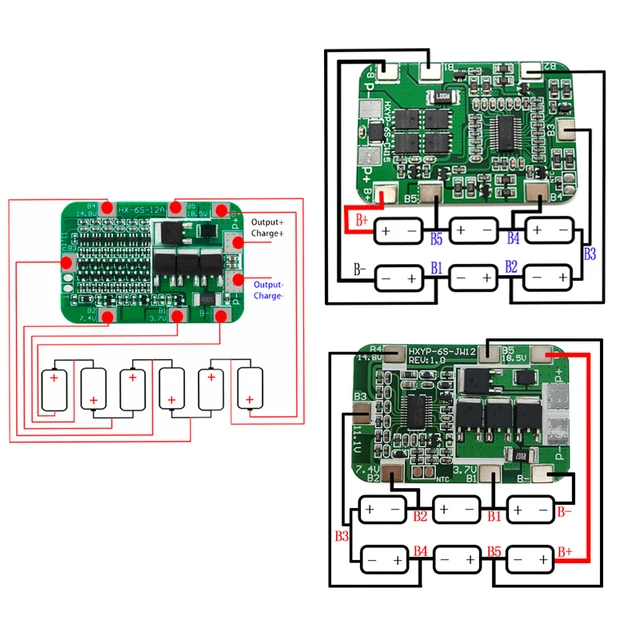 - **Voltage Range**: Typically designed for lithium-ion cells with a voltage range of 3.6V to 4.2V per cell, making the total pack voltage range approximately 21.6V to 25.2V.