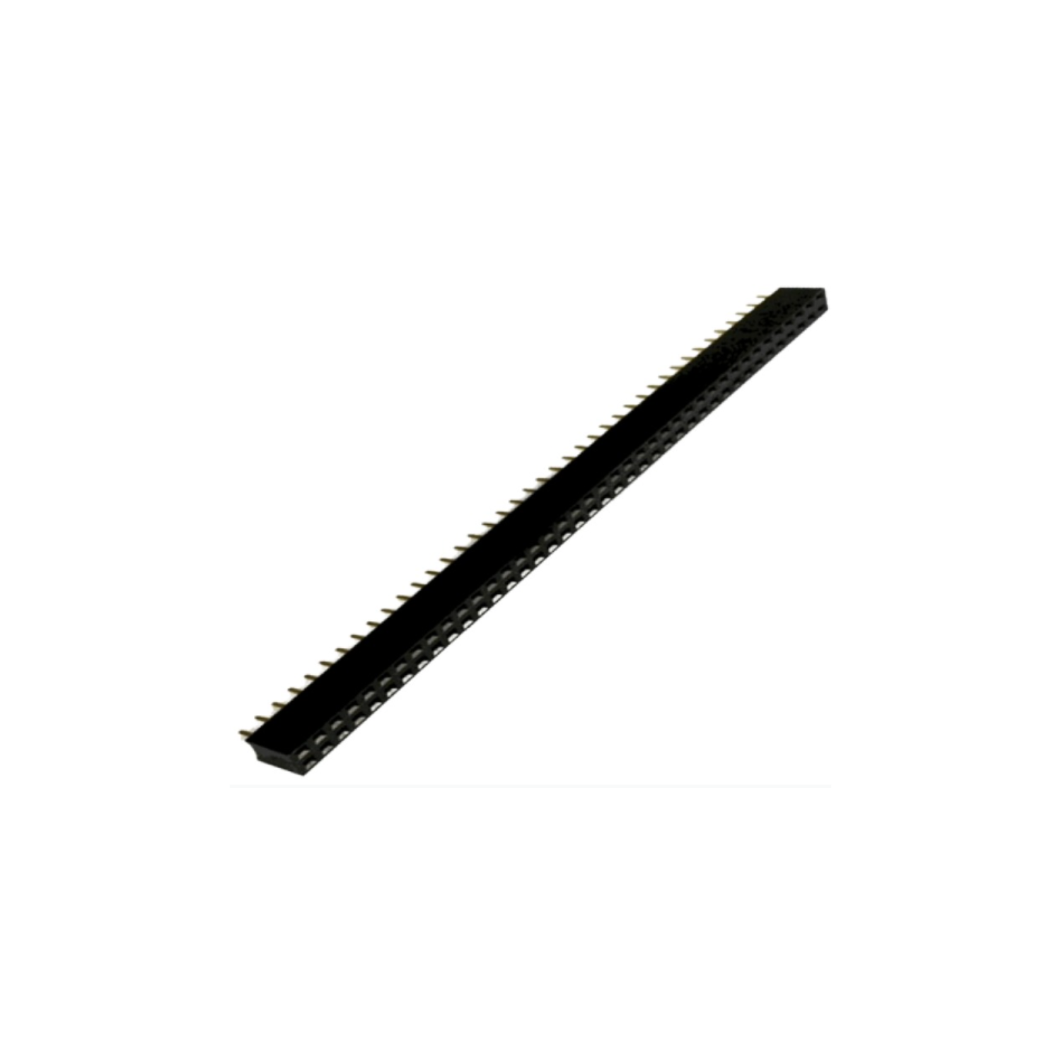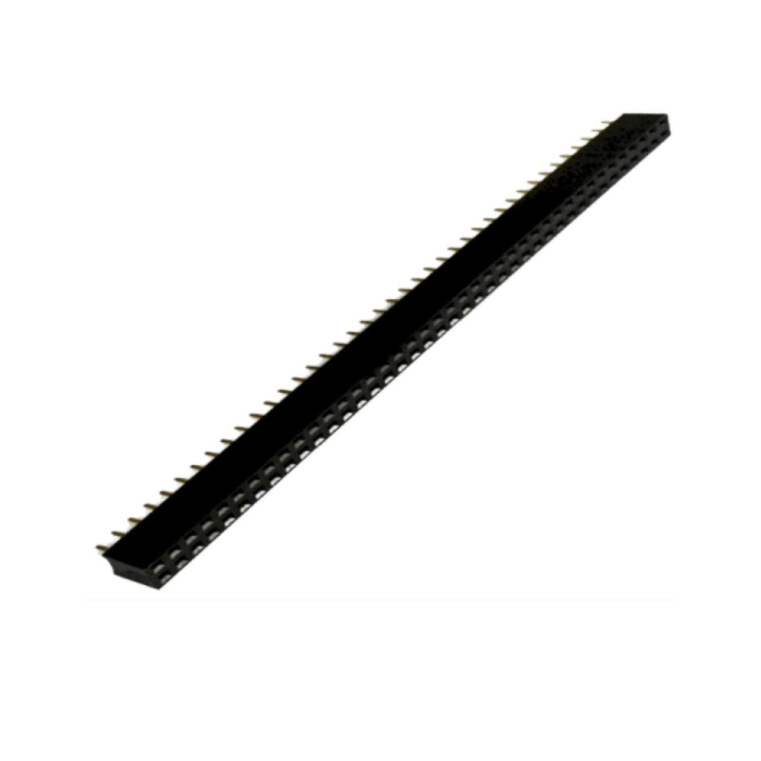The Double Female Header Pins are versatile connectors featuring 40 pins in each row, totaling 80 pins. These headers can be easily stripped down to the desired number of pins required for various applications. They feature pins on one side with small straight 40 pins in each row and holes on the other side for connecting male headers or other pins. This makes them ideal for a wide range of electronic projects, including prototyping and custom PCB connections.