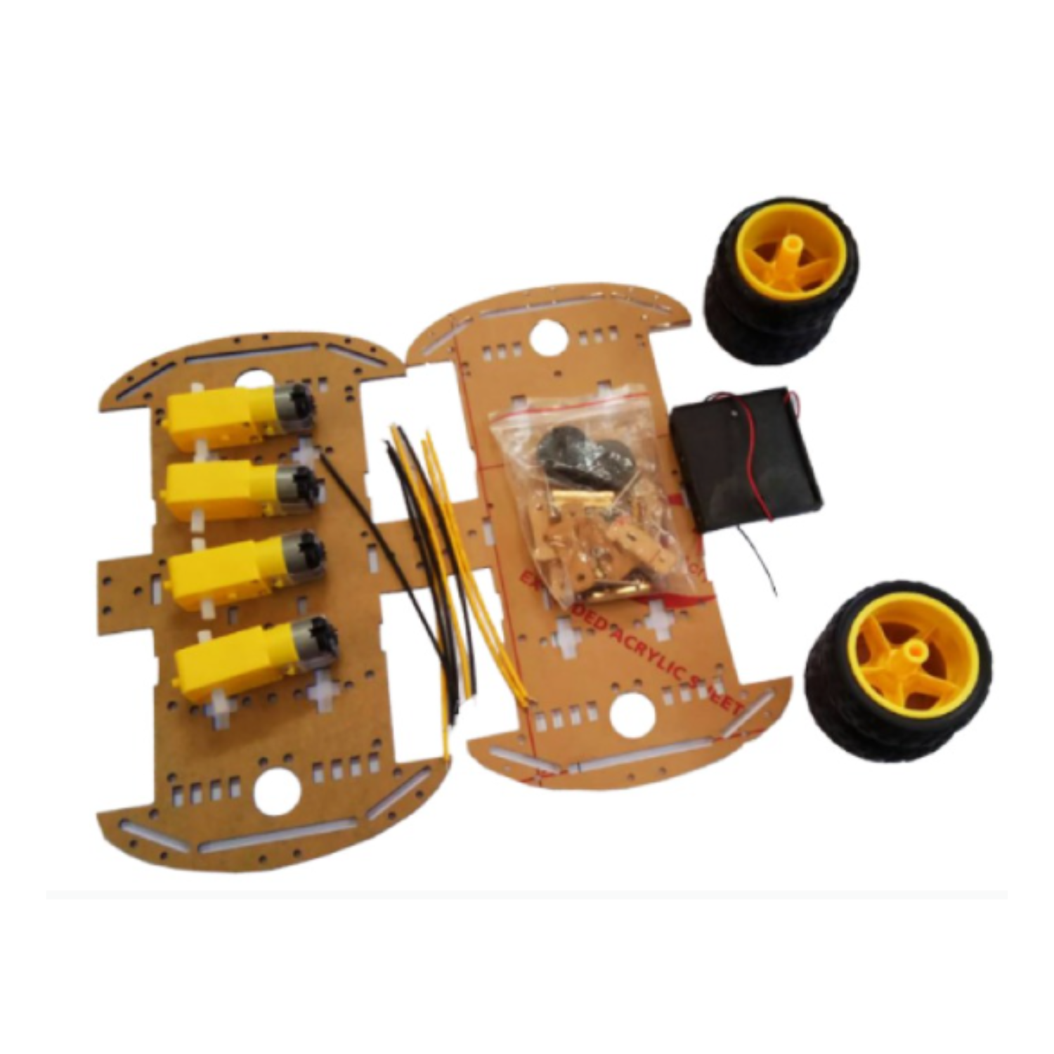 The 4 Wheel Smart Car Set is a 4WD Smart Chassis Module. This Smart Car Kit is a complete package of Upper and Lower Chassis module, 4 Motors, 3 AAA battery holder etc. It has various features like: - Simple mechanical structure, Very easy to install, Cost effectiveness and many more. It can be suitable for various Arduino related DIY projects.