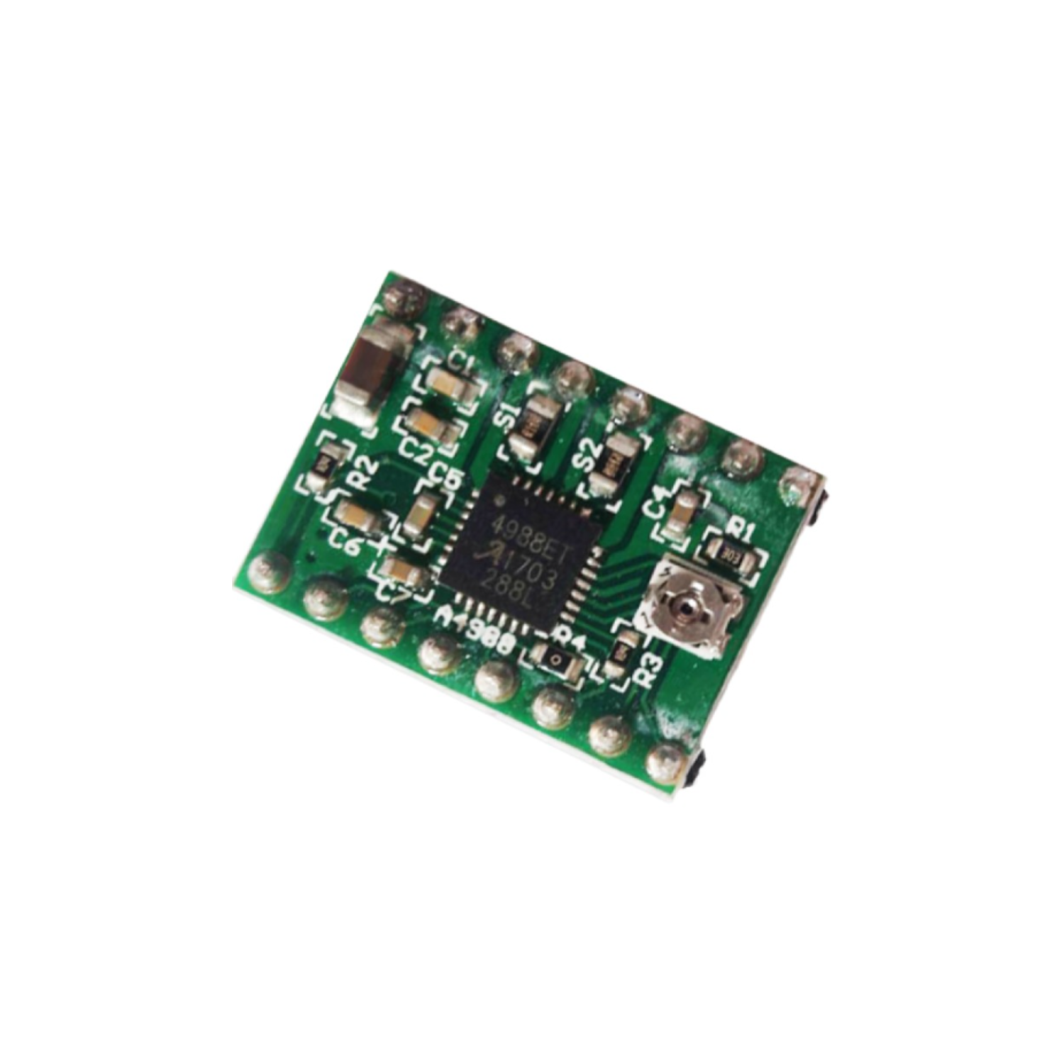 The A4988 Stepper Motor Driver Carrier is a breakout board for Allegro’s A4988 microstepping bipolar stepper motor driver, designed to simplify the control of stepper motors in a wide range of DIY projects. This driver offers adjustable current limiting, over-current, and over-temperature protection, making it robust and reliable for various applications. It operates within a voltage range of 8 V to 35 V, providing flexibility and ease of integration.