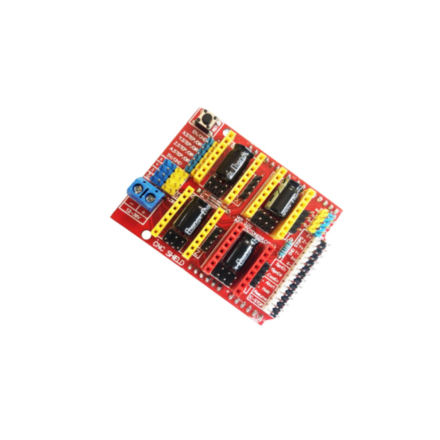 The CNC/Stepper Motor Shield for Arduino is a versatile shield designed to control up to 4 stepper motors using Arduino boards, compatible with GRBL 0.9 firmware. It incorporates 4 A4988 stepper motor driver breakout boards, making it ideal for applications such as robotics, linear motion projects, CNC routers, laser cutters, and more.