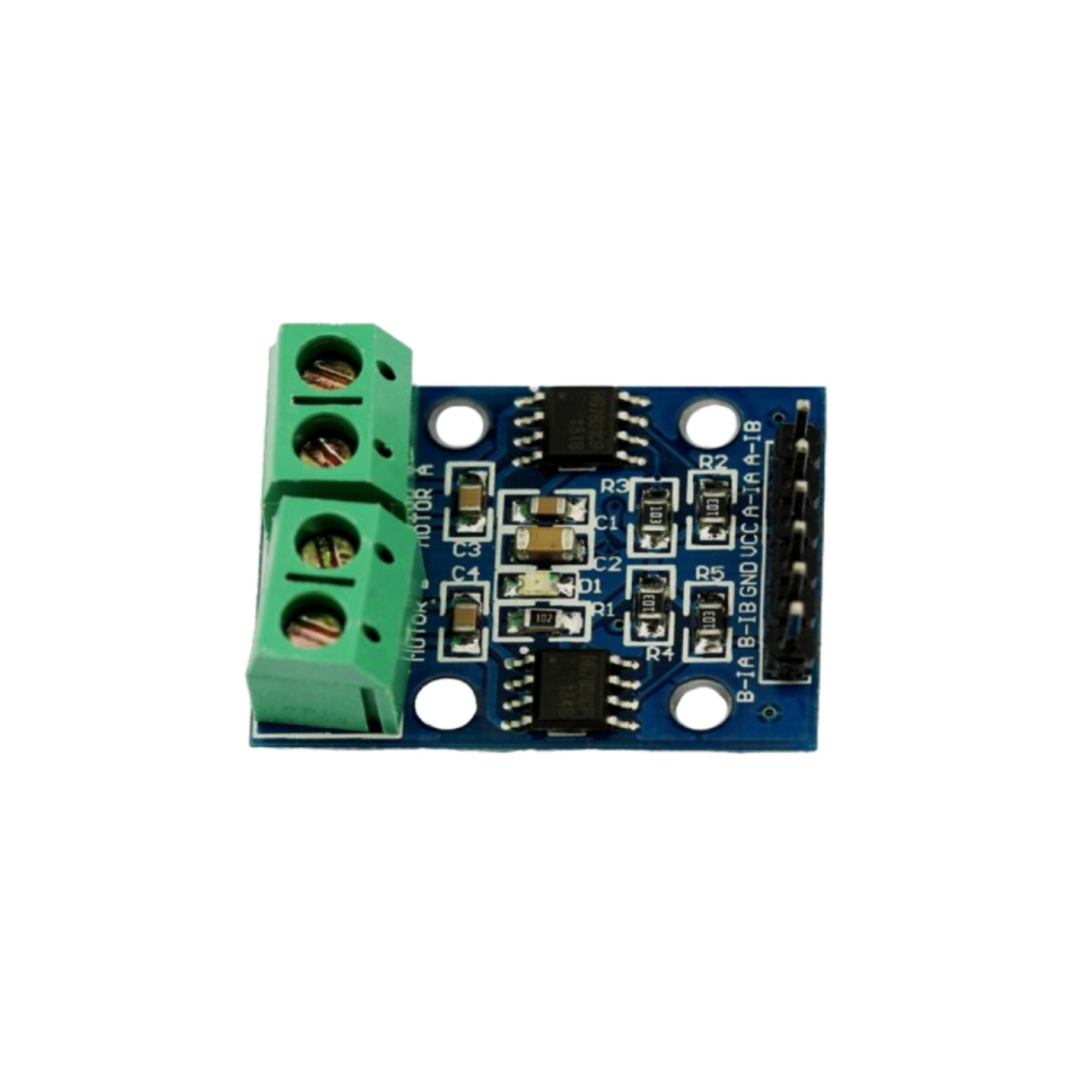 The HG7881 (L9110) module is a versatile motor driver suitable for driving small robots and other motorized projects. It supports simultaneous control of two DC motors or a 4-wire 2-phase stepper motor, offering a continuous current output of up to 800 mA per channel. This module operates within a motor voltage range of 2.5V to 12V and can be directly connected to a CPU or microcontroller for easy integration. It features low static work current and low saturation pressure drop, ensuring efficient motor control with minimal power consumption. The motor connectors are screw terminals, providing secure connections in various applications.