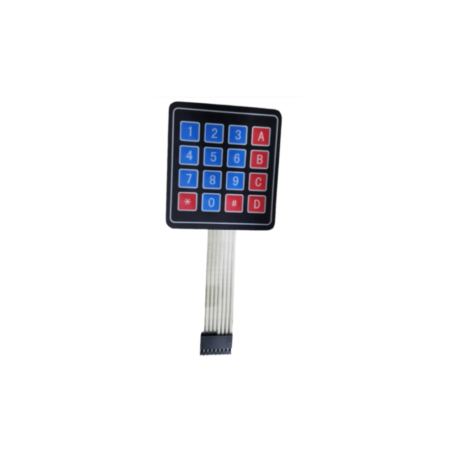 The 4*4 Matrix Keypad is a basic, easy-to-use keyboard designed for microcontroller projects. This keypad lacks a touch sensor but provides straightforward connectivity and usability. It features an adhesive backing for simple mounting in various applications. The keypad comes with an 8-pin interface and is accompanied by a cable for easy installation.