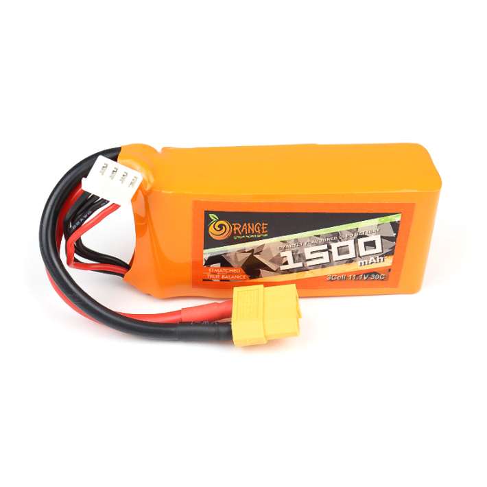 It is not surprising to us that Orange?Lithium polymer packs are the go-to pack for those in the know. Orange?batteries deliver the full rated capacity at a price everyone can afford. The ORANGE 11.1V / 1500mAh 3S 30C LiPo battery pack have a matched resistance and the true balance. These Orange batteries have a good temperature control after high rate discharge.