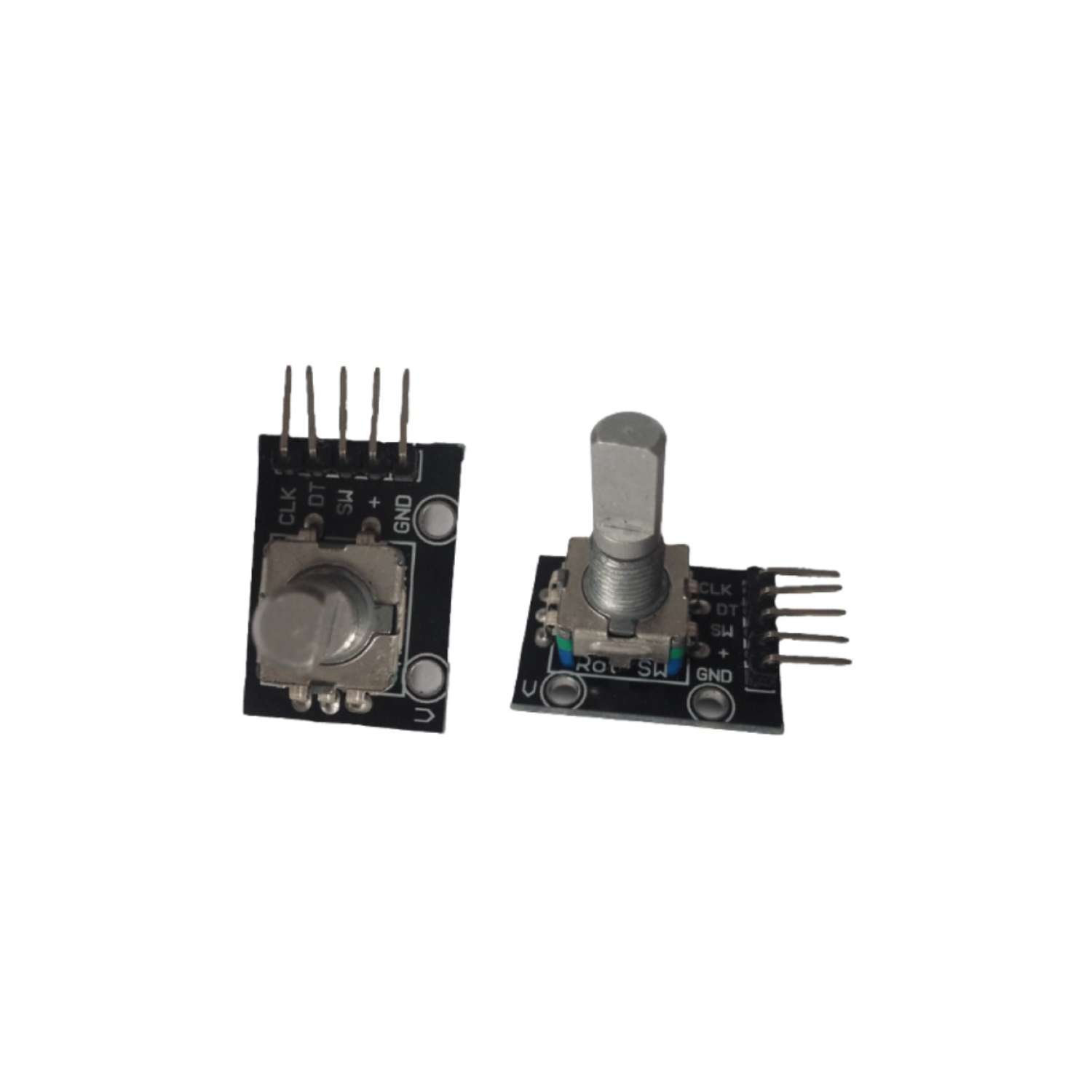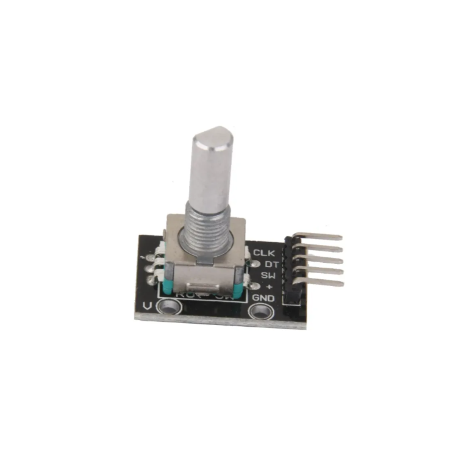The Rotary Encoder is a versatile component designed for precise control applications. It can rotate an unlimited number of times and features a flat top with a push-button function under the shaft. This makes it ideal for a variety of interactive and control applications, providing both rotational and push-button input capabilities.