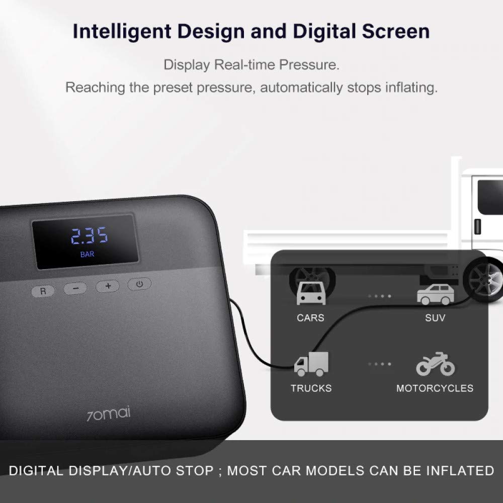 70mai Digital Air Compressor Lite, Portable Tire Inflator, 12V DC Air Pump for Cars, Electronic Fast Compressor,160PSI with Pressure Gauge