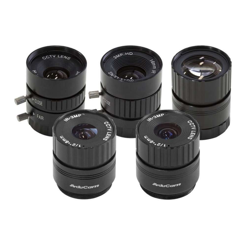 Arducam CS-Mount Lens Kit for Raspberry Pi HQ Camera (Type 1/2.3), 6mm to 25mm Focal Lengths, 65 to 14 Degrees, Telephoto, Wide Angle, Pack of 5