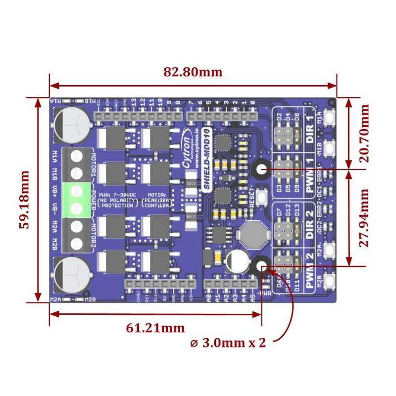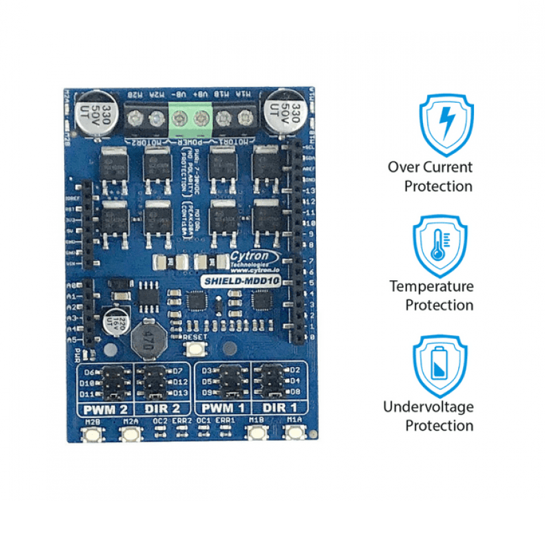 1 x Cytron 10A Dual Channel DC Motor Driver Shield for Arduino Uno.