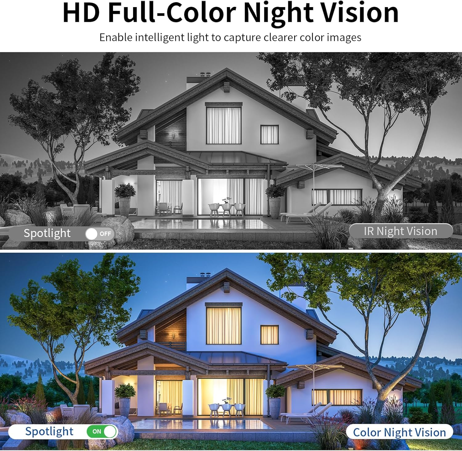 Four Camera Security Camera Outdoor, 360° View Outside Camera, 2.4Ghz WiFi, Human Detection, Color Night Vision, Pan & Tilt, 10x Zoom,Two-Way Audio, Plug-in Cameras, Local & Cloud Storage