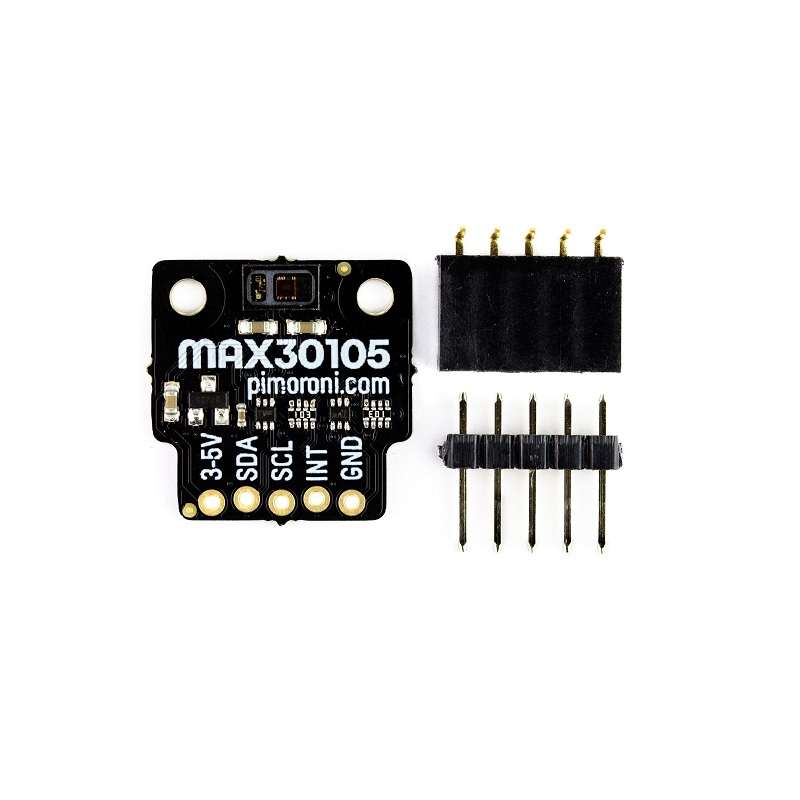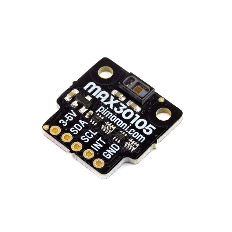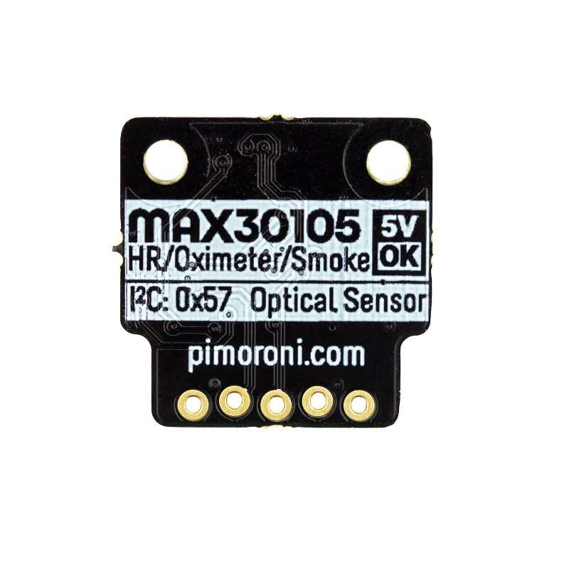 This PIMORONI MAX30101 Breakout Heart rate Oximeter smoke sensor has three LEDs—green, red, and infra-red—and photodetectors that can be used together to detect the amount of light reflected back to the sensor. A technique called photoplethysmography (PPG) can be used to detect the change in color of your skin with each beat of your heart when the sensor is pressed against your fingertip.