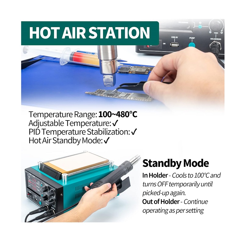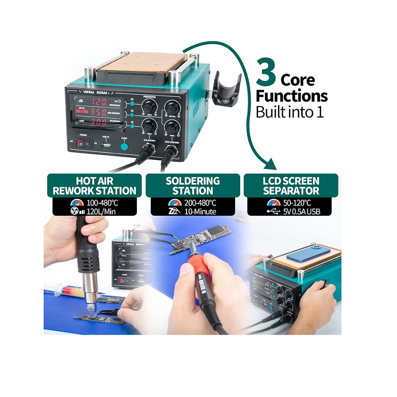 YIHUA 853AAA-I 3-in-1 Digital SMD Rework Station - Soldering, Desoldering, Hot AirGun & Preheat BGA